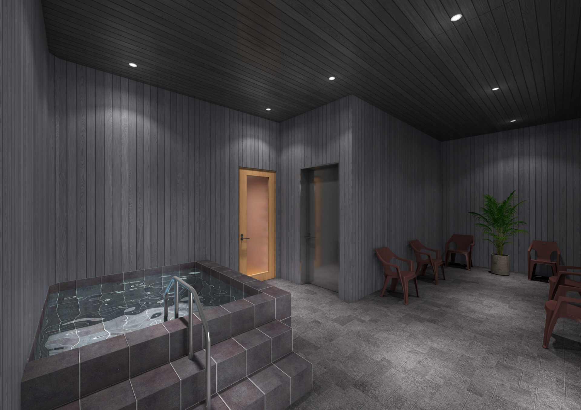「水風呂」や広々とした室内と「ととのいスペース」も完備。