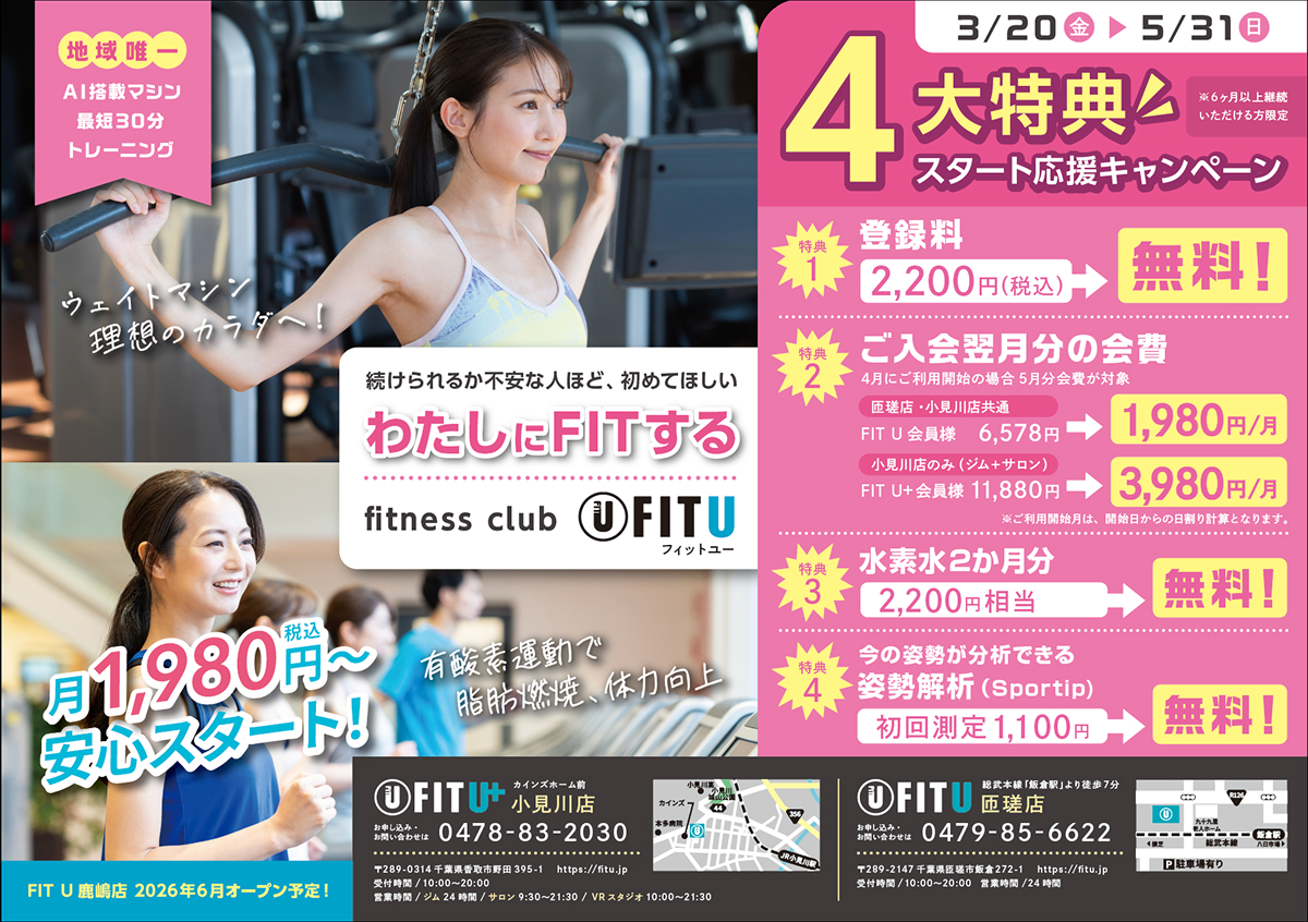 ※1 匝瑳店会員様は2号店のFITU⁺小見川のジム・ヴァーチャルスタジオもご利用いただけます。